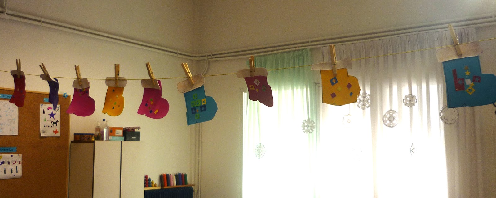Τη Δευτέρα (όπως είχαμε υποσχεθεί) το χριστουγεννιάτικο δέντρο και τα στολίδια βγήκαν από την αποθήκη και βαλθήκαμε να στολίσουμε την τάξη. Αφού μετρήσαμε τα στολίδια, διαλέξαμε τις γιρλάντες και στολίσαμε το δέντρο, βάλαμε τα φωτάκια στην πρίζα και καλωσορίσαμε τον Δεκέμβριο με δύο δουλειές: Το τακτοποίημα των συρταριών και των φακέλων μας, και την παρουσίαση ενός διαφορετικού ημερολογίου, που μετράει ανάποδα!! Μία μεγάλη καμινάδα με αριθμούς από το 21 μέχρι το 1 θα μας κάνει συντροφιά μέχρι να κλείσουν τα σχολεία: Κάθε μέρα θα μετράμε ένα βήμα για τον Άγιο Βασίλη, θα κλείνουμε ένα κομμάτι της καμινάδας με ένα χάρτινο αγιοβασιλιάτικο σκουφάκι, και όταν τα σκουφάκια φτάσουν στον αριθμό 1, τότε το σχολείο θα κλείσει και θα περιμένουμε στο σπίτι μας τον Άγιο Βασίλη!
